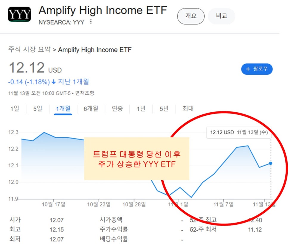 ● 높은 배당 수익률: YYY ETF는 고배당 주식과 고수익 채권에 투자하여 상대적으로 높은 배당 수익을 제공합니다.