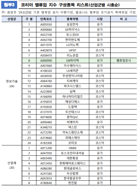 또한 기업 가치 제고 계획을 발표한 기업들에는 현대차, DB하이텍, 메리츠금융지주 등이 있으며, 이들 기업은 자본 효율성과 주주 환원 성과가 우수해 코리아 밸류업 지수에 포함되었습니다. 이러한 기업들의 참여는 주주 환원 및 경영 투명성 강화 노력을 보여주는 사례로, 한국 증시의 활성화와 함께 장기적인 투자 매력도를 높일 것으로 기대됩니다.