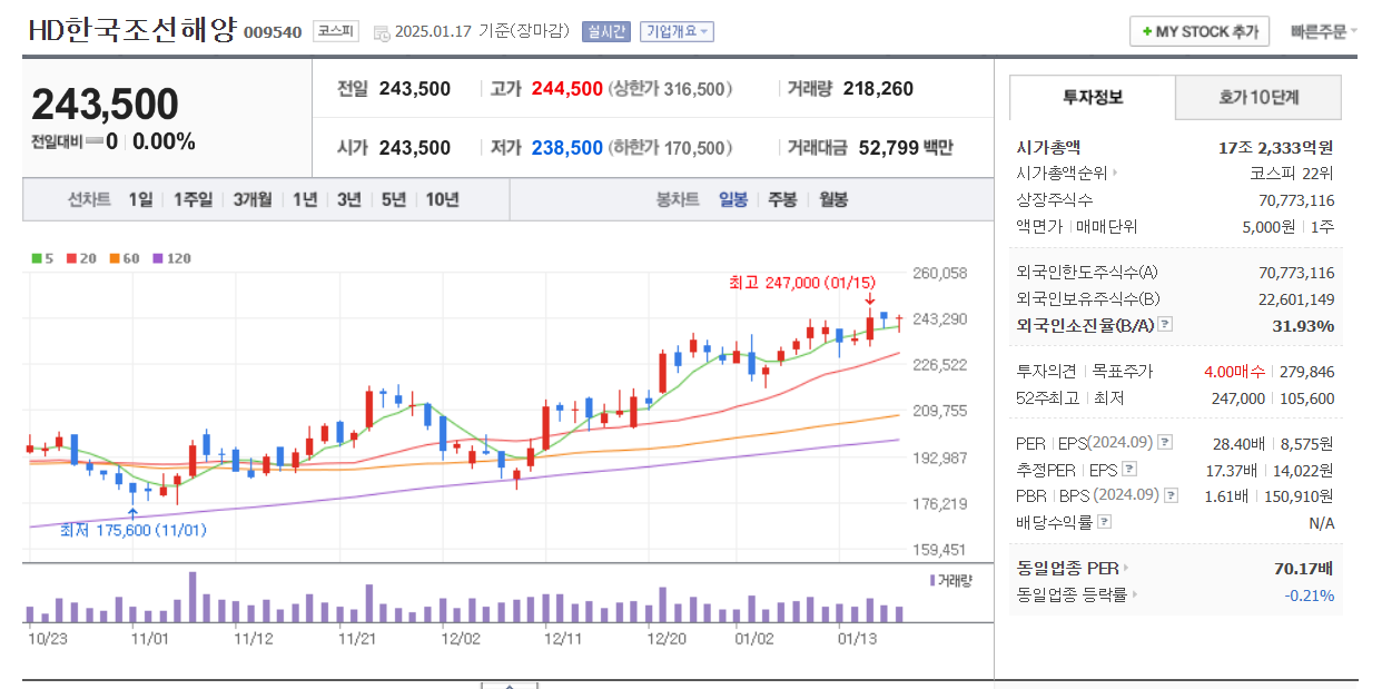 트럼프 대통령은 과거 에너지 수출 확대와 해양 운송 효율성을 높이는 데 정책적 우선순위를 두었습니다. LNG 수출 증가와 대형 운송선 수요 확대는 한국조선해양에게 직접적인 기회 요인으로 작용할 것입니다. 특히, 트럼프 행정부가 친환경 선박과 관련된 규제를 완화하고 해양 인프라 프로젝트에 투자할 가능성이 커, 한국조선해양의 첨단 기술과 글로벌 시장 점유율 확대에 긍정적인 영향을 미칠 전망입니다. 또한, 미국 해군의 군용 선박 수요 확대도 한국조선해양의 방산 관련 선박 제작 부문에 새로운 성장 동력을 제공할 수 있습니다.