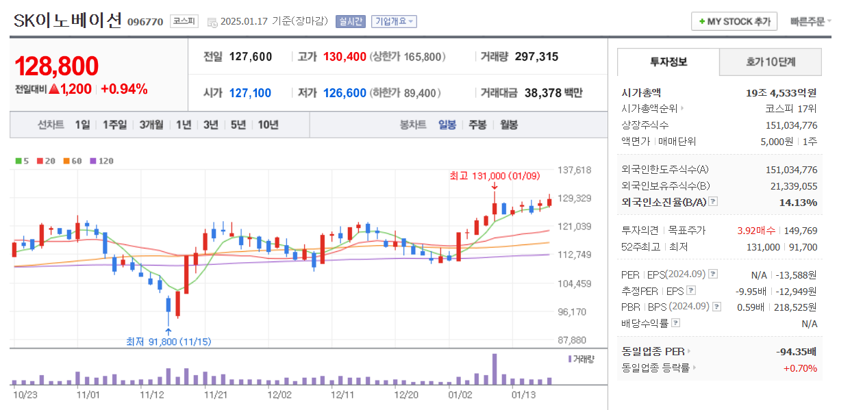SK이노베이션은 한국 최대의 정유회사 중 하나로, 석유화학 제품과 2차 전지(전기차 배터리) 기술에서도 높은 경쟁력을 보유하고 있습니다. 특히 이 회사는 고체 전해질 기반 차세대 전기차 배터리 개발을 선도하며 친환경 에너지 전환을 위한 핵심 기술을 축적하고 있습니다. 기존 리튬이온 배터리의 안정성과 에너지 밀도를 한 단계 업그레이드한 이 기술은 글로벌 전기차 시장에서 큰 주목을 받고 있습니다.
